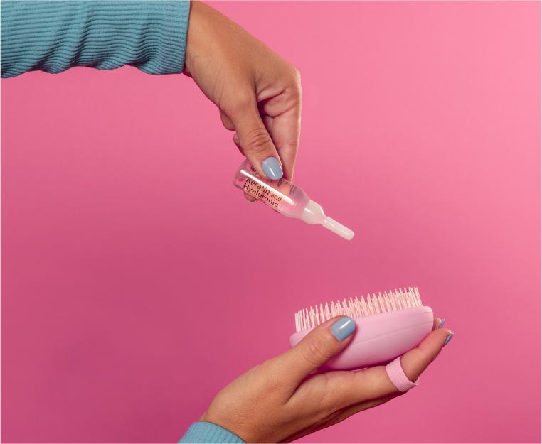 Кератин-гиалуроновые ампулыhe от Nuggela & Sulé – специальная формула на основе кератина и гиалуроновой кислоты, которая восстанавливает волосы после ежедневного чрезмерного использования и мгновенно восстанавливает их. Он также запечатывает и увлажняет волосяное волокно.