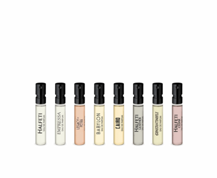Состоит из восьми ароматов объемом 2 мл, включая Halfeti, Halfeti Leather, Halfeti Cedar, Empressa, Cairo, Babylon, Constantinople и The Legacy of Petra.