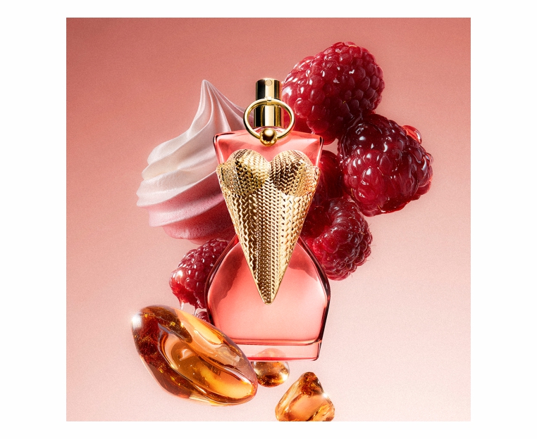 В глаза бросается её насыщенно-розовый флакон, культовый конический корсет, украшенный плетением и позолотой, и золотой пирсинг. В композицию аромата Divine Couture входят ноты сладкой и сочной малины, гурманской и притягательной меренги, а также насыщенный и чувственный бензоин.