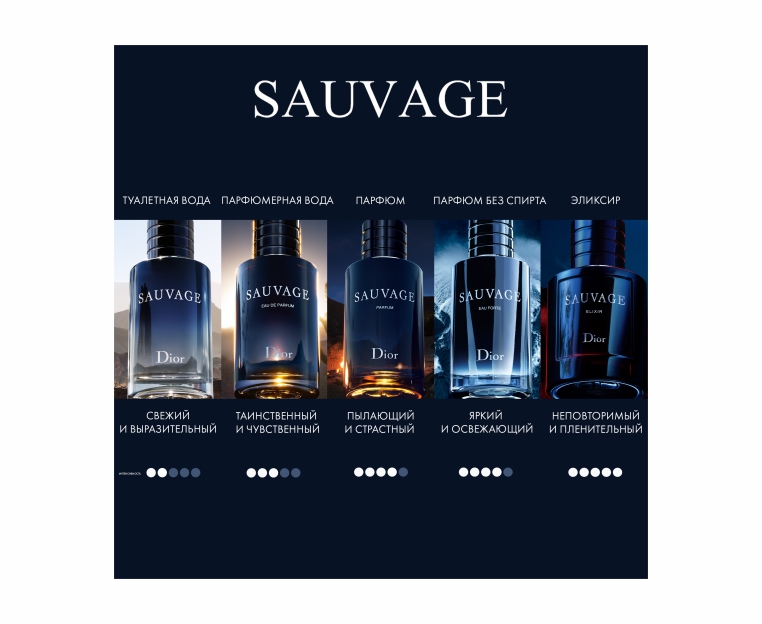 Парфюмерная вода Sauvage - насыщенный и загадочный аромат, где древесный амбровый шлейф Амброксана кутается в нежнейшую вуаль из абсолю Ванили с дымчатыми нотами, которые делают аромат более мужественным.