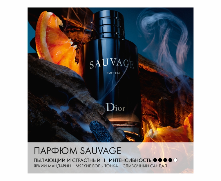 В шлейфе Парфюм Sauvage звучат цитрусовые и древесные ноты: высокая концентрация придаёт аромату мужскую силу, сохраняя при этом гармонию с таинственными ночными акцентами.