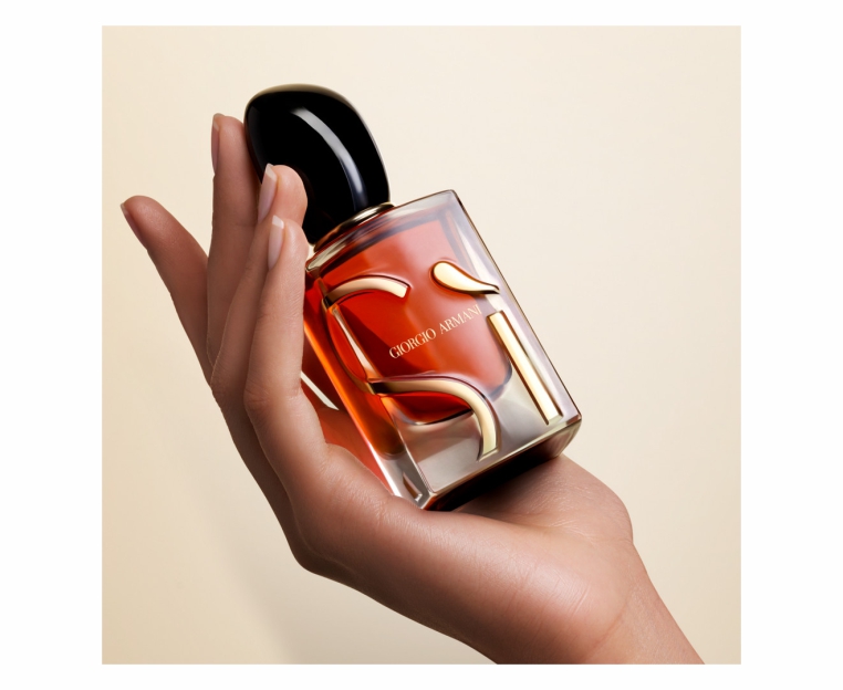 Аромат заключен в культовый флакон SÌ. Этот флакон, похожий на драгоценный камень, украшенный объемными золотыми буквами с логотипом SÌ, приятен на ощупь. А интенсивный дымчатый градиентный эффект у основания флакона усиливает янтарный оттенок сока внутри.