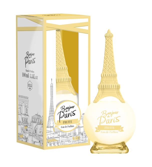 Bonjour de Paris – коллекция нежных женских ароматов, производимых на собственной фабрике в городе Грасс, - международной родине парфюмерии, - во Франции. Флаконы Bonjour de Paris представлены в виде Эйфелевой башни нежных, пастельных оттенков и олицетворяют собой приглашение на путешествие по мощеным улицам и садам самого красивого и романтичного города в мире – Парижу. Bonjour de Paris Fruite – Пионовый щербет, пикантный и игристый, концентрат женственности, свежести и радости. Озорной и озорной аромат с витаминным началом. Лимон, лайм и сорбет из зеленого яблока сочетают свои игристые нотки в веселом коктейле. Его нежное цветочное сердце имеет изысканный оттенок пралине и малинового миндального печенья. Верхние ноты: Лайм, Зеленое Яблоко, Лимонный Сорбет Ноты сердца: Пион, Пралине, Дурман Базовые ноты: Яблоня, Мускус, Белый Кедр