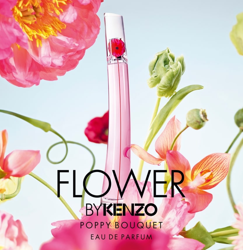 "FLOWER BY KENZO POPPY BOUQUET", новый интенсивно цветочный аромат от KENZO. В композиции POPPY BOUQUET мак проявляет свое очарование в богатом цветочном букете. Свежая нота японской груши сорта "Наши" предвосхищает яркий всплеск чувственного цветочного аккорда болгарской розы и гардении, перерастающий в изысканное благоухание миндально-древесных нот шлейфа.