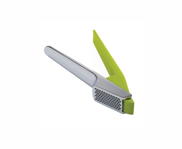 Эта умная давилка для чеснока, состоящая из двух частей, включает в себя скребок для удаления чеснока после того,