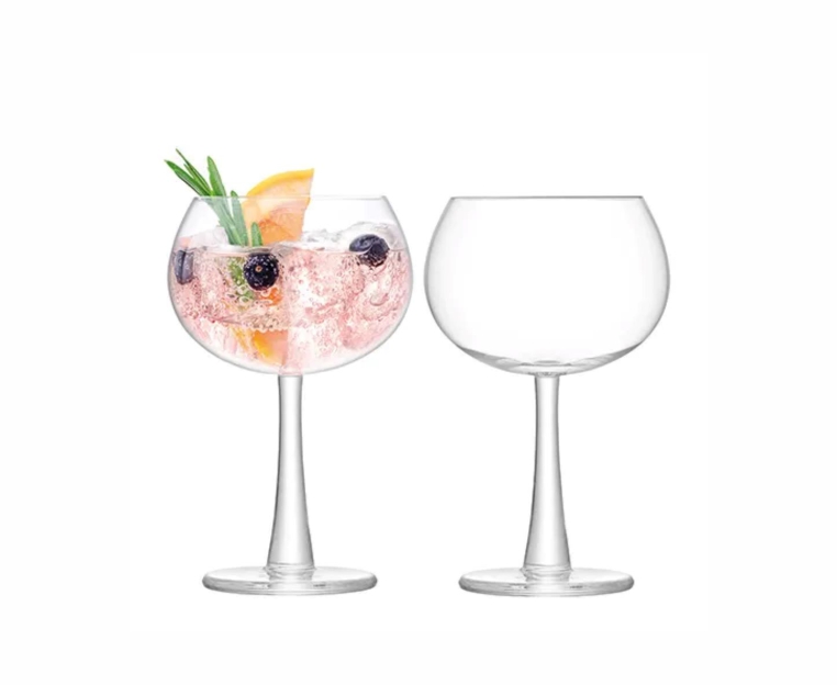 Эта пара бокалов для джина в форме шара имеет толстую ножку и тяжёлую ножку для устойчивости и комфорта.