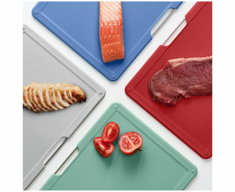 Двусторонние доски с текстурированной режущей поверхностью, удобной для ножей, и нескользящими ножками.