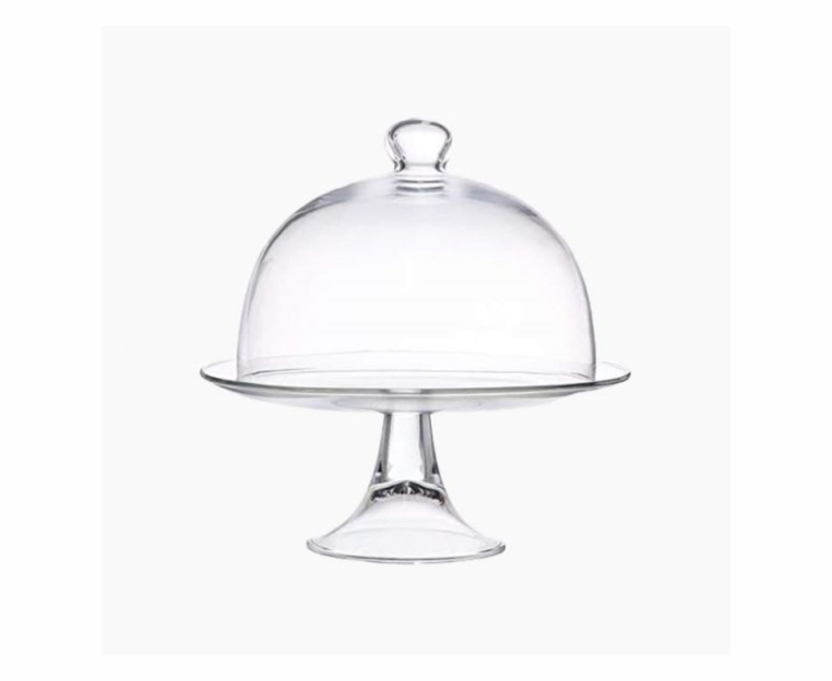 Эта круглая подставка из стекла идеально подходит для подачи тортов и пирожных.