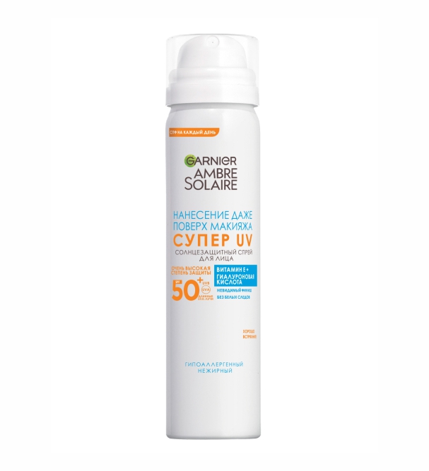 Разработанный специально для чувствительной кожи лица солнцезащитный спрей Ambre Solaire SPF 50+ с витамином Е и гиалуроновой кислотой