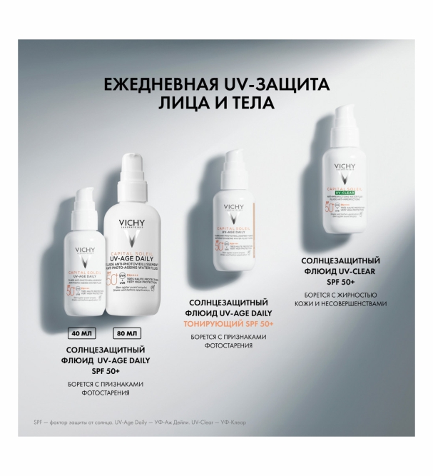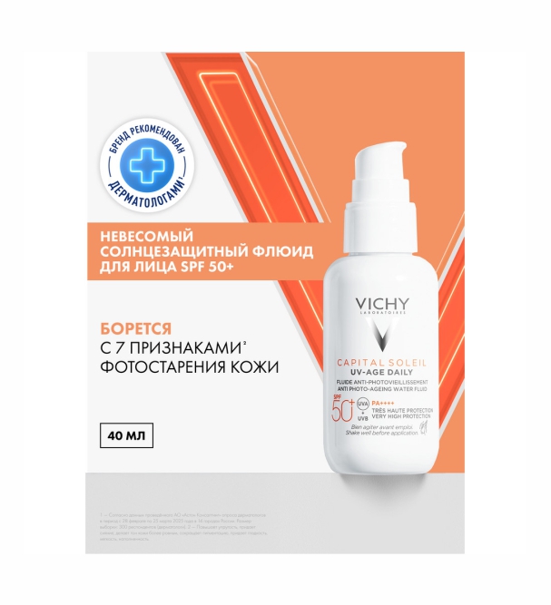 Солнцезащитный флюид для лица VICHY CAPITAL SOLEIL UV-AGE DAILY Невесомый солнцезащитный флюид для лица против признаков фотостарения SPF 50+