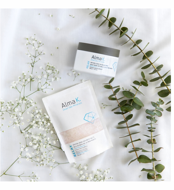 Соль Мертвого моря, богатая минералами, помогает расслабиться и увлажняет кожу, восстанавливая её естественную гладкость. Соль для ванны Alma K. (260 гр.), обогащенная экстрактом ромашки, также успокаивает, питает и смягчает кожу.