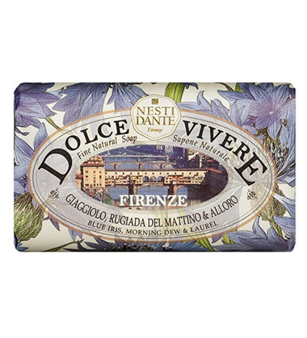 Nesti Dante — экологически чистое мыло, обогащенное растительными экстрактами и маслами. Производится во Флоренции с 1947 года по старинной котловой технологии варки мыла. Не содержит вредных поверхностно-активных веществ, сульфатов, парабенов, синтетических масел и искусственных красителей. Без аллергенов и ингредиентов животного происхождения. Мыло не размокает и быстро восстанавливается после длительного контакта с водой. Аромат мыла Firenze (Флоренция) наполнен чувственными ноты ириса , терпкими ноты лавра и свежестью утренней росы.
