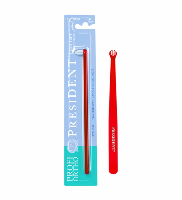 Зубная щетка PRESIDENT End-Tuft малопучковая с конусообразным профилем щетины для идеальной чистки в труднодоступных местах
