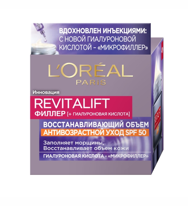 Лучший антивозрастной уход Revitalift Филлер с максимальной степенью защита SPF 50. Вдохновлен инъекциями с новой гиалуроновой кислотой для более интенсивного восполняющего эффекта. Ультралегкая текстура, благодаря 50x раз более мелких частиц макрогиалуроновой кислоты, позволяет более интенсивно заполнять морщины и восполнять потерю объема кожи изнутри. Защита с SPF фактором 50 борется и предотвращает повреждения кожи от солнечного излучения, помогает бороться с фотостарением и внутренней пигментацией.