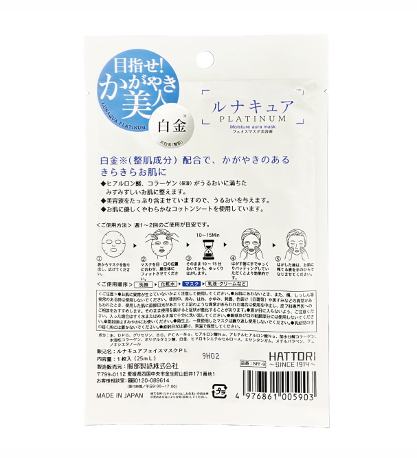 Tканевая маска из Японии Lunaqua ПЛАТИНА. Платиновое сияние кожи.