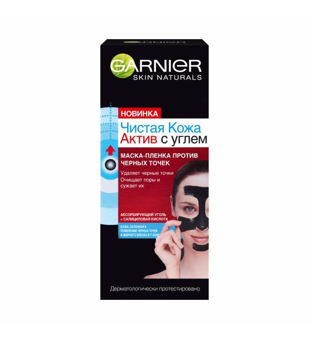 Маска для лица Garnier Маска-пленка Чистая Кожа Актив с углем против черных точек