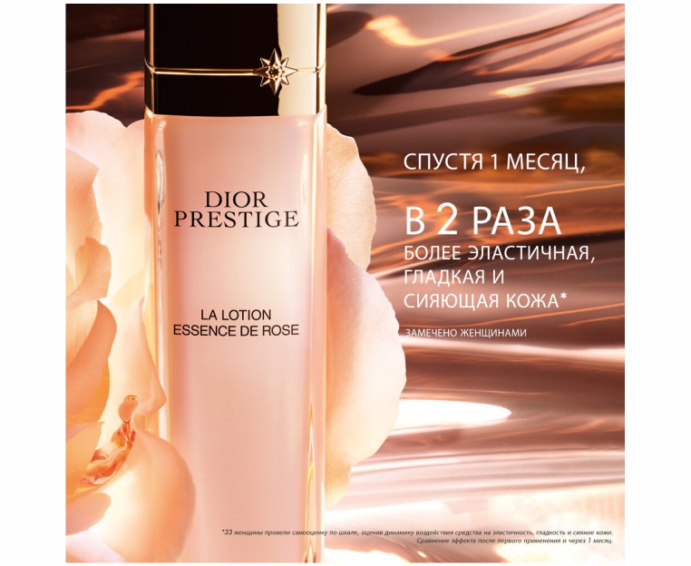 Кожа заметно наполняется влагой и выглядит подтянутой. Она в два раза более упругая*, в два раза более гладкая* и в два раза более сияющая*, возвращает себе сияние молодости и готова к ритуалу ухода за кожей Dior Prestige.