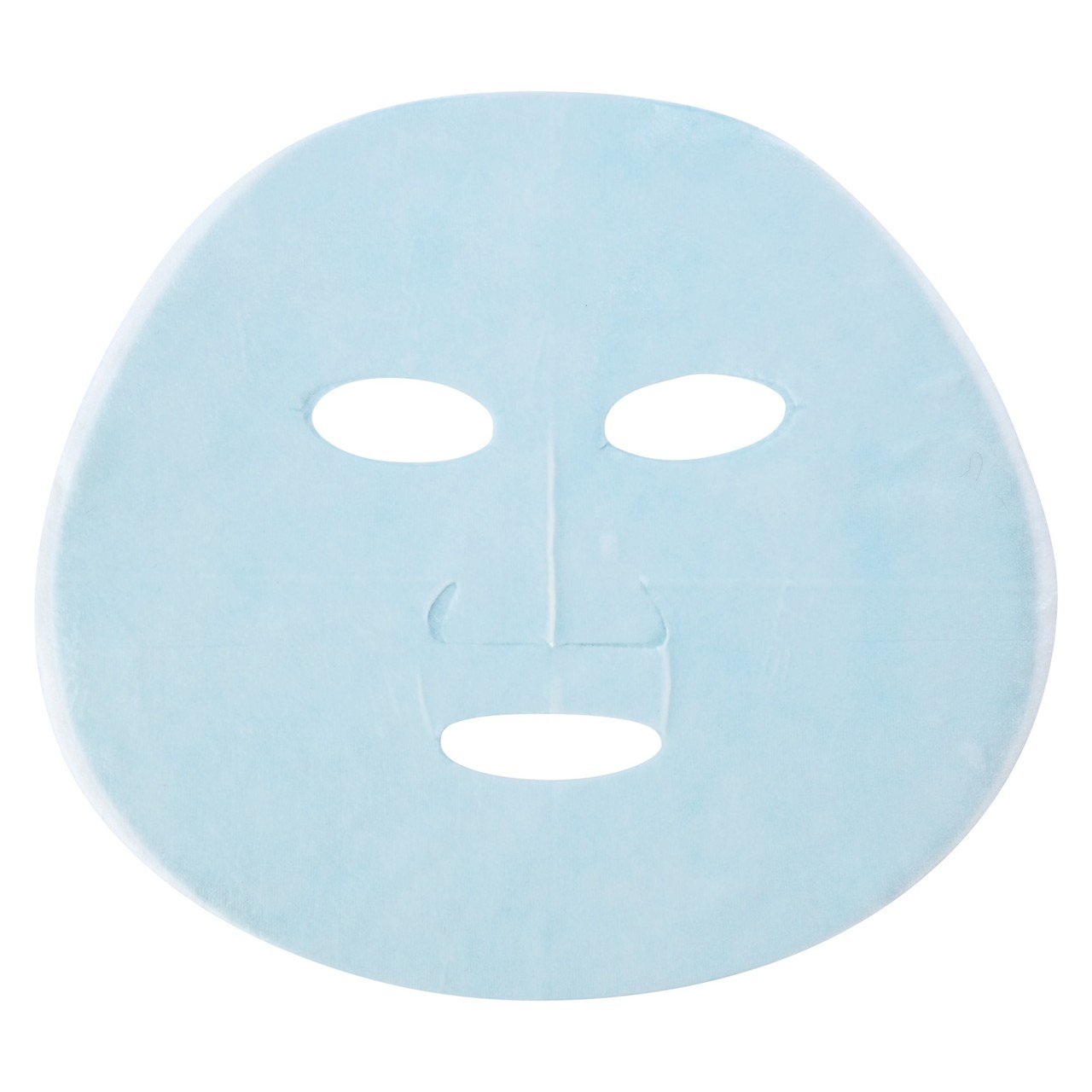 "1. Открыть маску. Нанести на предварительно очищенное лицо белой стороной. Синяя защитная пленка должна быть на внешней стороне маски.