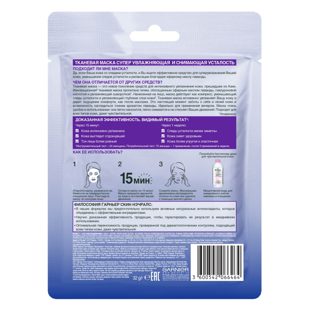 Маска для лица Garnier Тканевая маска Увлажнение+Антистресс с гиалуроновой кислотой