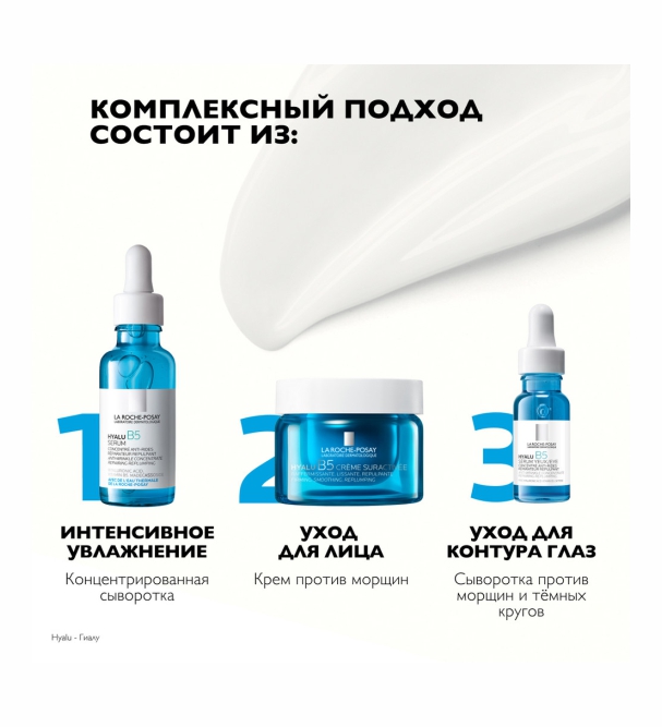 Увлажняющий крем против морщин HYALU B5 с комплексом из трех форм гиалуроновой кислоты разглаживает морщины, повышает упругость и эластичность кожи.