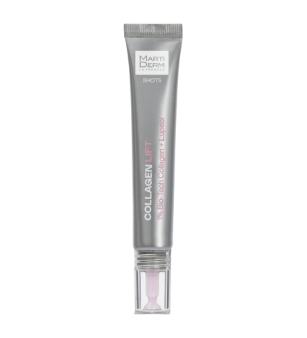 Martiderm Shots Collagen Lift - представляет собой концентрированную мощную сыворотку, специально предназначенную для решения проблем, связанных с упругостью и эластичностью кожи. Эта линия от Martiderm сочетает в себе два активных ингредиента для достижения синергического эффекта и максимальной эффективности с каждой каплей! В данном случае этот шот содержит 1% коллагена Bio-Tech в сочетании с лупеолом, обеспечивающим эффект подтяжки и ремоделирования. Коллаген Bio-Tech усиливает синтез коллагена, а лупеол поддерживает этот процесс и помогает улучшить качество коллагена. Коллаген, являющийся структурным белком кожи, играет решающую роль в поддержании ее упругости и эластичности. Повышая выработку коллагена, этот продукт повышает упругость и эластичность кожи.