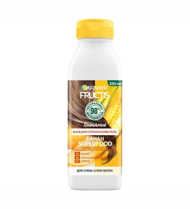 Первый веганский, на 98% натуральный бальзам-ополаскиватель SUPERFOOD от Fructis. Его богатая текстура мгновенно проникает в волосы, интенсивно питает и обеспечивает легкость расчесывания. |