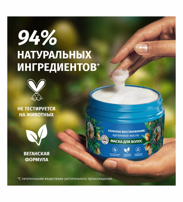 Наполните волосы энергией природы. Маска для волос Herbal Essences Аргановое масло Глубокое восстановление питает поврежденные волосы, делая их гладкими и блестящими, а насыщенный аромат средства зарядит вас энергией на весь день. Смесь растительных питательных нутриентов и аргановое масло восстановят поврежденные волосы после первого применения. Мы тщательно отбираем ингредиенты природного происхождения, чтобы привнести силу растений в вашу ванную комнату. Восстановите природную красоту волос и превратите уход за волосами в момент наслаждения вместе с коллекцией Аргановое масло Глубокое восстановление. Веганская формула. Область применения: