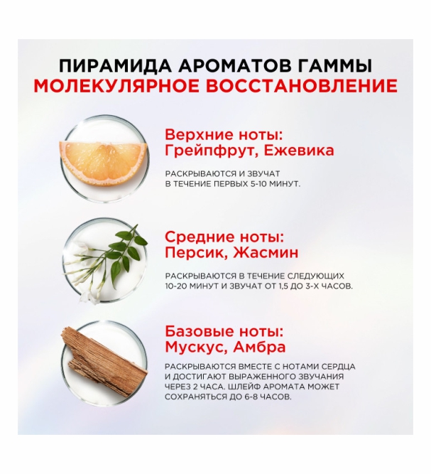 4 шага для мгновенной трансформации волос: пре-шампунь, шампунь без сульфатов, кондиционер и сыворотка для защиты от повреждений. Эффективный комплекс, вдохновленный премиальным уходом, восстановит Ваши волосы изнутри. Уже после 5 применений всей гаммы волосы на 98% более прочные и блестящие и на 48% более мягкие. Линейка подарит волосам лёгкий аромат свежести из нот грейпфрута, жасмина и мускуса.