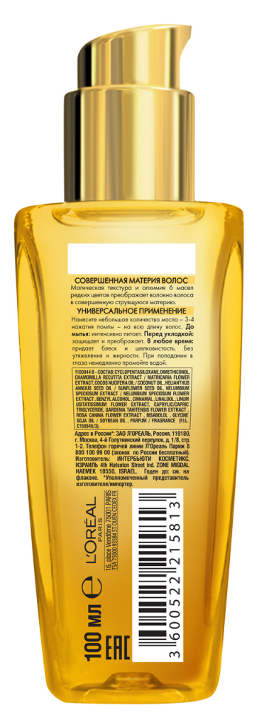 Масло используется в небольших количествах — хватит 3-4 нажатия помпы для того, чтобы распределить средство по всей длине волос. При попадании в глаза немедленно промойте их водой.
