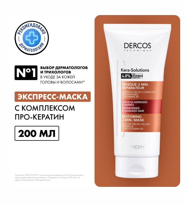 Маска для волос VICHY DERCOS KERA-SOLUTIONS Экспресс-маска с комплексом Про-Кератин, реконструирующая поверхность волоса